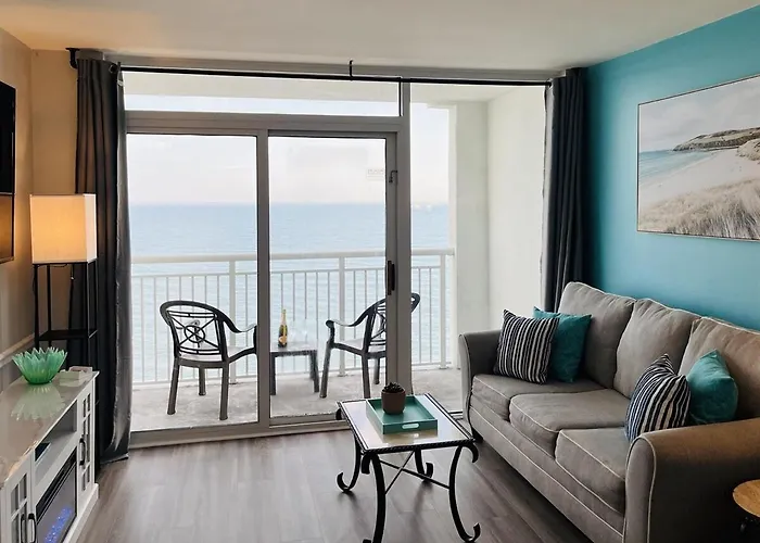 The beachfront Relaxing Getaway At Camelot Resort! C 1602 Myrtle Beach is located 2.6 km from Ripley's Aquarium of Myrtle Beach and a 13-minute walk from Gay Dolphin Gift Cove. While staying in this apartment, guests can visit Captain Hooks Adventure Golf, which is 550 metres away, and enjoy views of the sea or chill by a private pool.